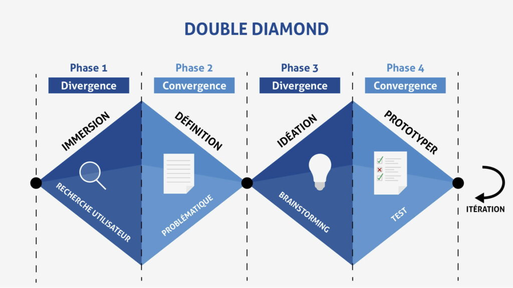Le Design Thinking complète parfaitement la démarche UX. C’est une méthode d’innovation qui place l’utilisateur au cœur du processus de conception, en favorisant la créativité et la co-construction entre les parties prenantes.